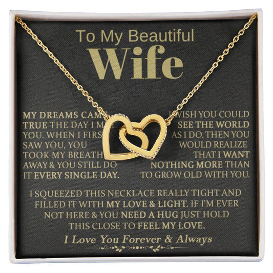 Gift for Wife "Grow Old With You" - Interlocking Hearts Necklace