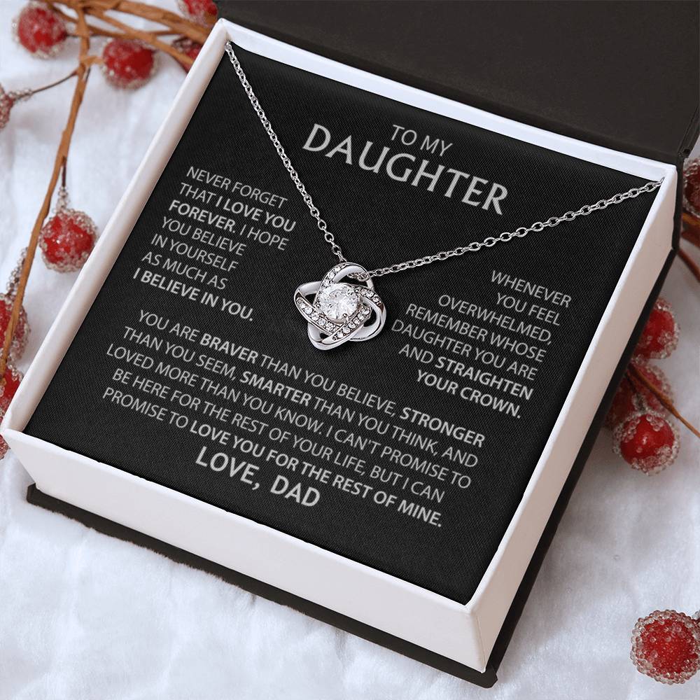 Imagine her reaction receiving this beautiful Love Knot Necklace. Representing an unbreakable bond between two souls, this piece features a beautiful pendant embellished with premium cubic zirconia crystals. Surprise your Daughters with this gorgeous gift today!